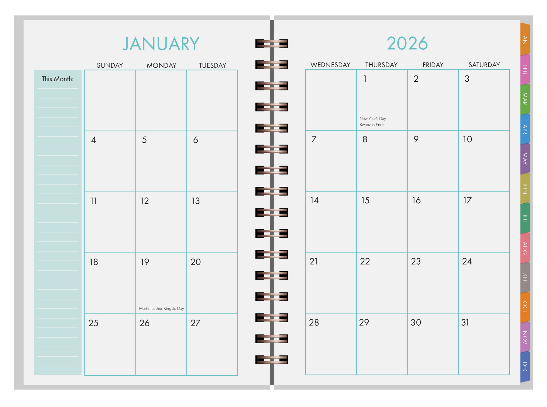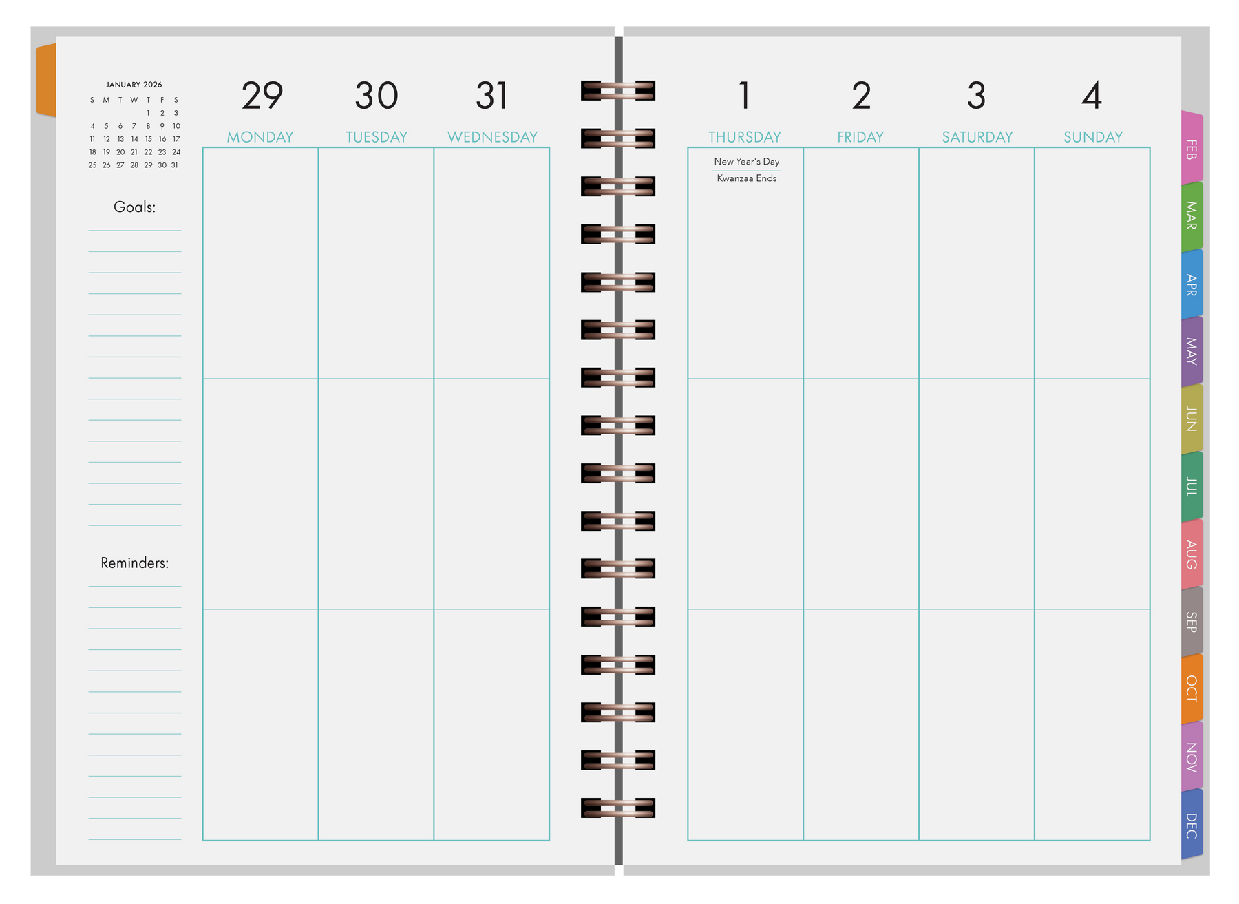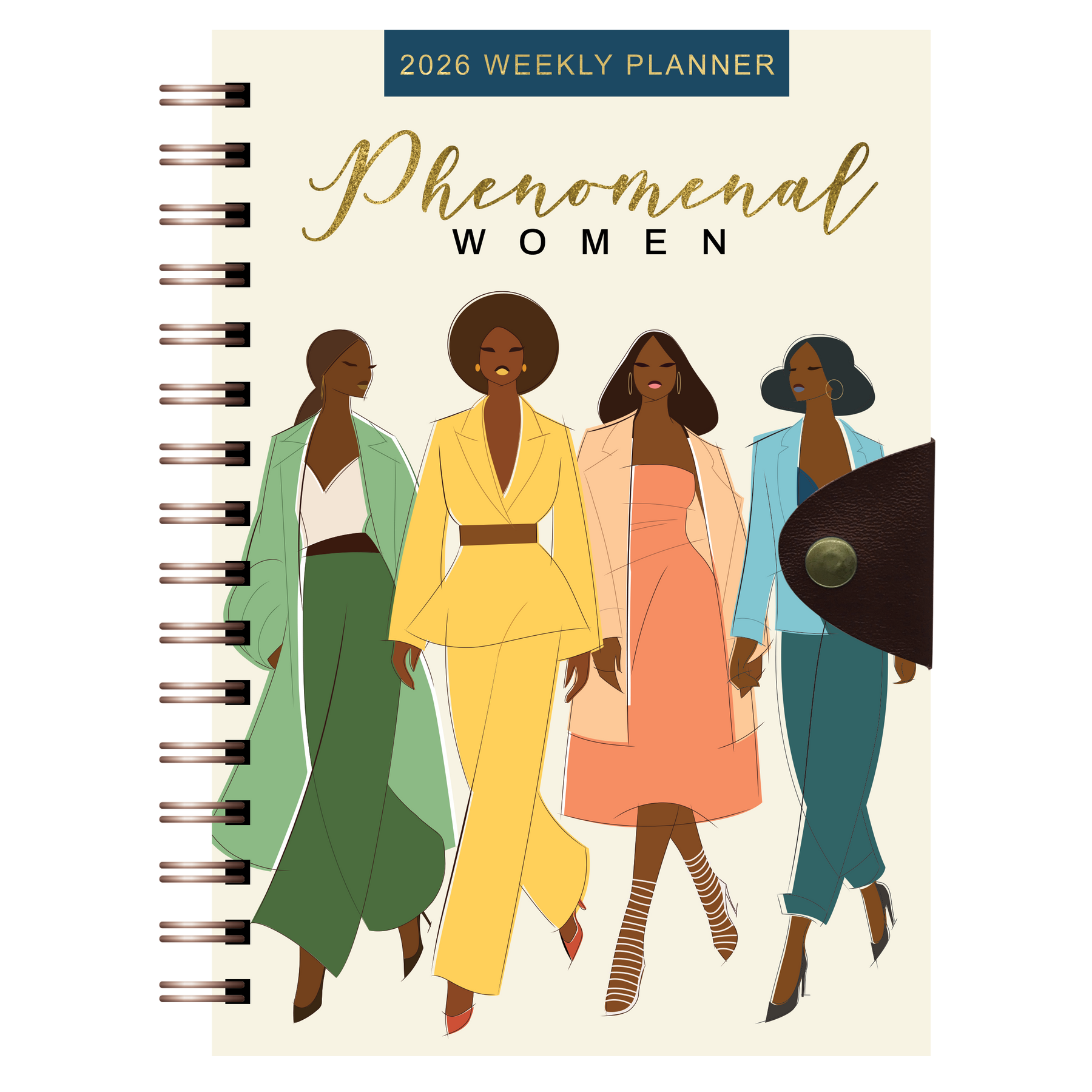 Celebrate your achievements and stay organized throughout 2026 with the Phenomenal Women Weekly Planner—designed specifically for the modern woman who refuses to miss a beat. This beautifully crafted planner measures 6" x 8.75", making it the perfect size to carry in your bag while remaining spacious enough for detailed planning. Each week gets its own dedicated spread, allowing you to break down your goals into actionable steps and track your progress with ease. Navigate effortlessly through the year with vibrant monthly tab dividers that make finding your place quick and intuitive. Every month features dedicated budget and note sections, empowering you to manage finances and capture important thoughts all in one place. The planner includes a convenient 2026-2027 mini view spread, giving you a bird's-eye perspective of both years to plan ahead with confidence. Whether you're juggling work, personal projects, or life's beautiful chaos, this planner becomes your trusted companion for turning dreams into reality and celebrating every phenomenal moment along the way.