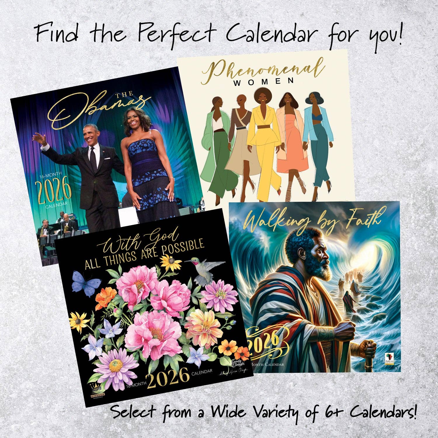 The 2026 African American Expressions calendar collection offers more than just dates — it’s a visual journey through culture, heritage, faith, and inspiration. Each month features stunning artwork or photography that celebrates Black identity, creativity, and strength. Whether you're drawn to messages of empowerment, spiritual reflection, or everyday beauty, these calendars are designed to uplift and connect with you all year long. • Dimensions: 12" x 12" • Includes 4 mini-view months of 2025 • Features 12 full-page months for 2026 • Printed on high-quality paper with vibrant imagery * Vibrant Visuals: Each calendar features original artwork and photography by Black artists, capturing powerful themes of culture, heritage, faith, and everyday inspiration. Every month presents a fresh and meaningful visual story rooted in the Black experience. * Oversized for Impact: Measuring 12" x 12" folded and 12" x 24" when open, each calendar offers large, easy-to-read date grids alongside full-page imagery. Perf