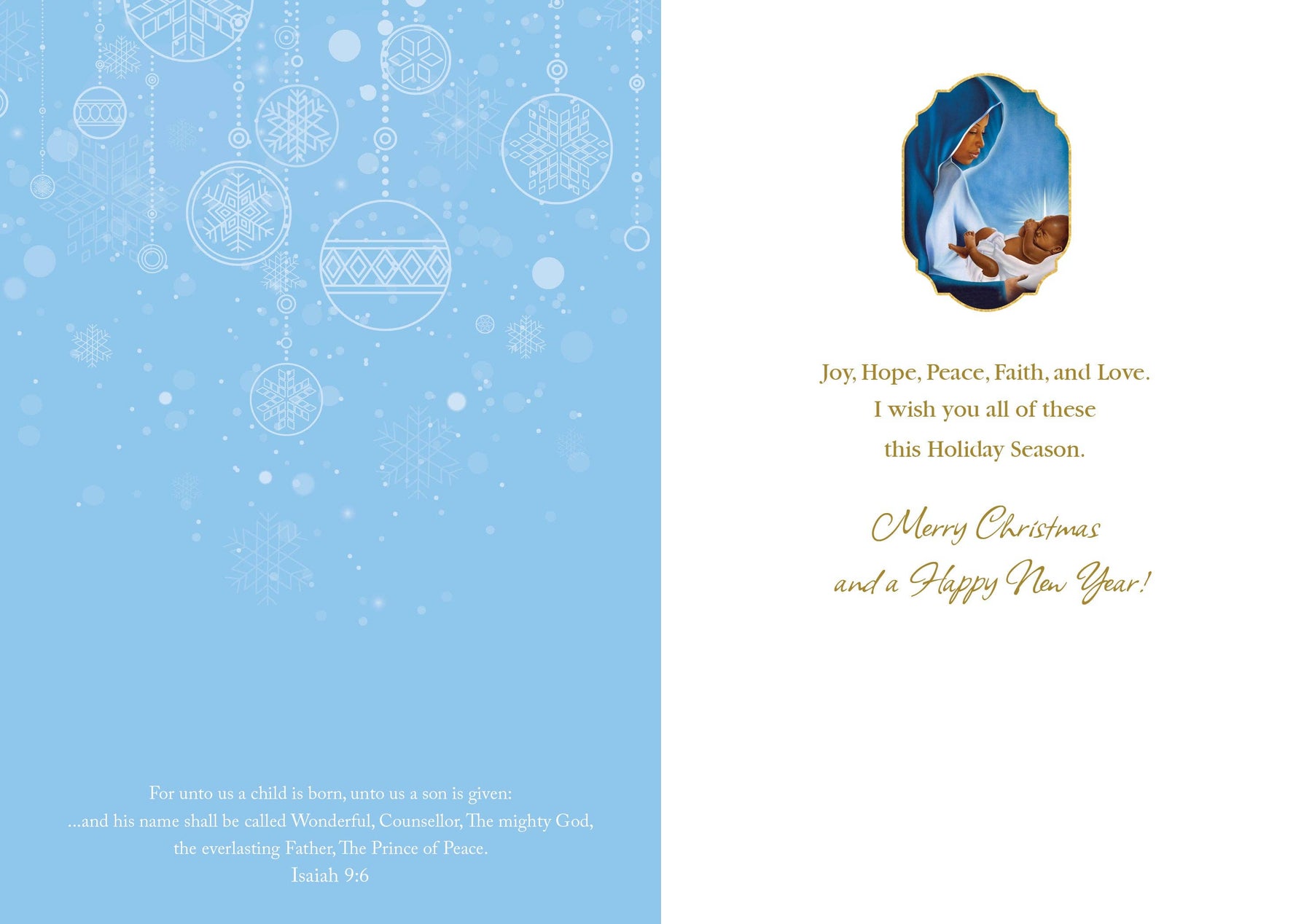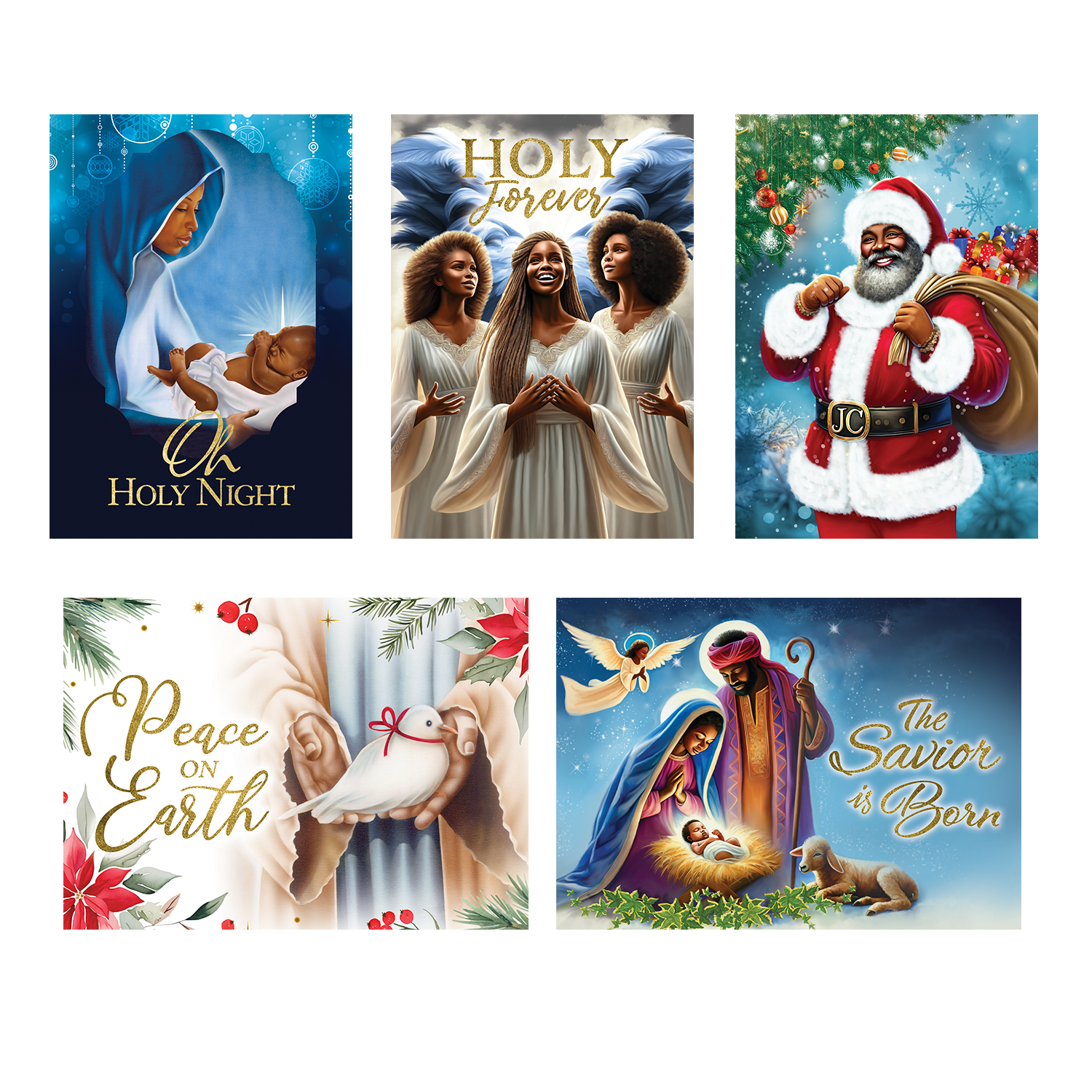 It's always a rush come Christmas time to find the right holiday cards! If you want to get ahead this year and stock up on the best African American holiday card assortment you'll find, you've come to the right place! Here at AAE, we have a beautiful collection of holiday cards that are as colorful as they are touching. You get five unique designs and a total of 15 cards per box, so you’ll have enough for everyone on your list!