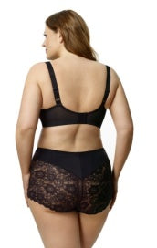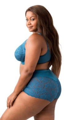 Indulge in effortless sophistication with this cheeky brief that seamlessly blends delicate lace artistry with sumptuous microfiber comfort and subtle tummy control. The perfect companion to our stretch lace bra collection, it's designed for those who refuse to compromise between style and all-day wearability. Slip into luxury that feels as beautiful as it looks. Available in sizes Medium through 5XL in Teal, Plum, Red, Mermaid, Steel Gray, Black and Ivory. For custom orders, reach out to reneesboutiquellc@gmail.com or call (434) 260-1773.